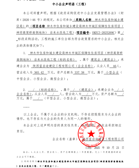 神木市城区保障性住房项目(神府高架桥南侧地块)自来水改线工程磋商文件(******01).zip ******建设局神木市城区保障性住房项目(神府高架桥南侧地块)自来水改线工程中标(成交)明细.pdf 中小企业声明函.png