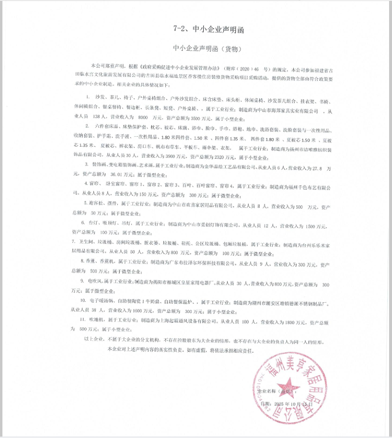 二、项目名称:古田县临水福地景区香客楼住房装修货物采购项目