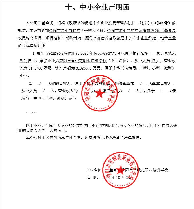| ******农村局荥阳市2025年高素质农民培育项目 | |||||||||||||||||||||||||||||||