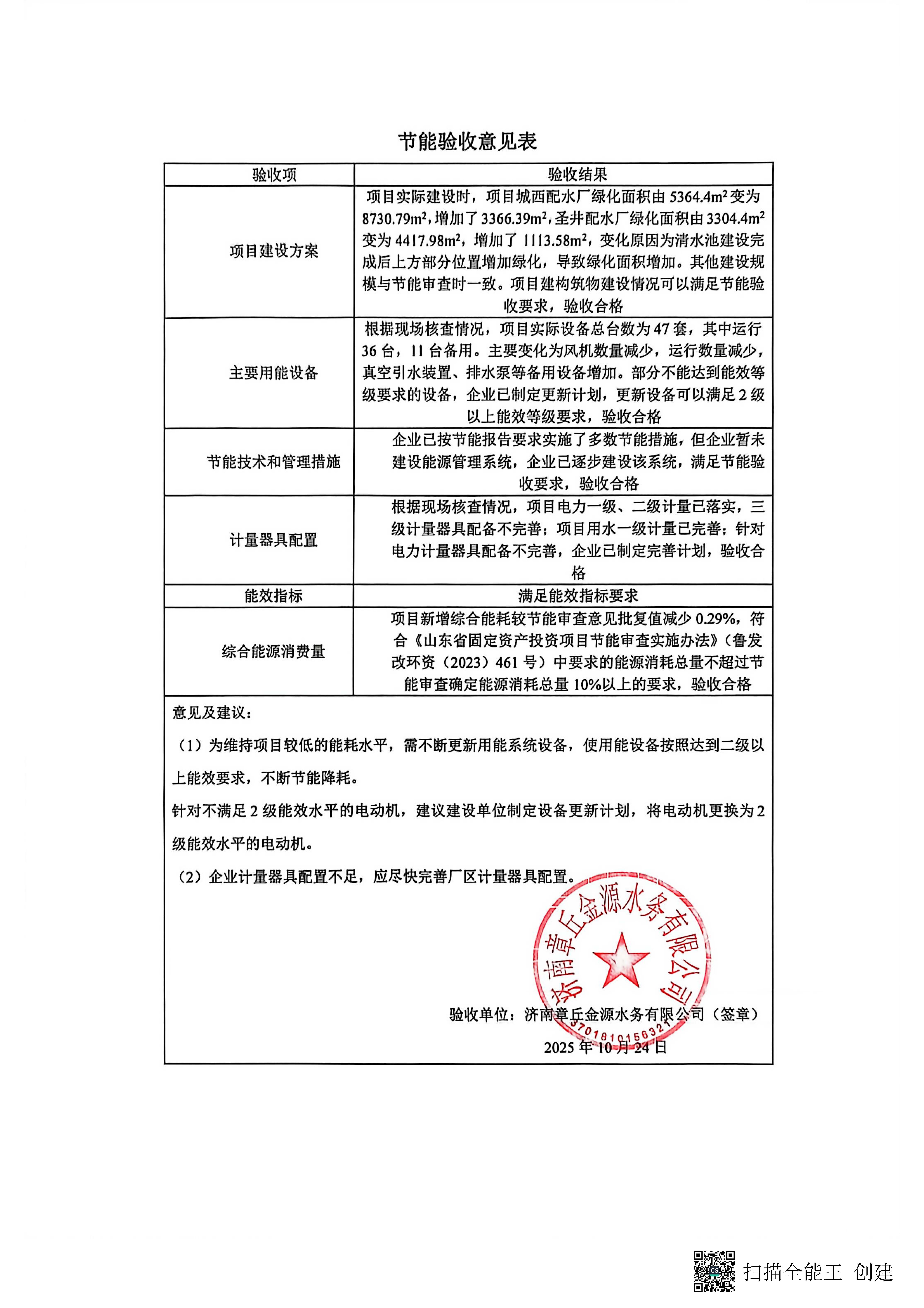******委员会关于印发<******委员会关于印发<山东省固定资产投资项******委员会和济南市行政审批服务局关于印发《济南市固定资产投资项目节能审查实施办法》的通知(济发改资环〔2023〕276号)等文件的有关要求,我公司《章丘区云湖水厂供水工程一期管线及配水厂项目》按步骤完成了节能验收工作,节能验收合格,特此公示。