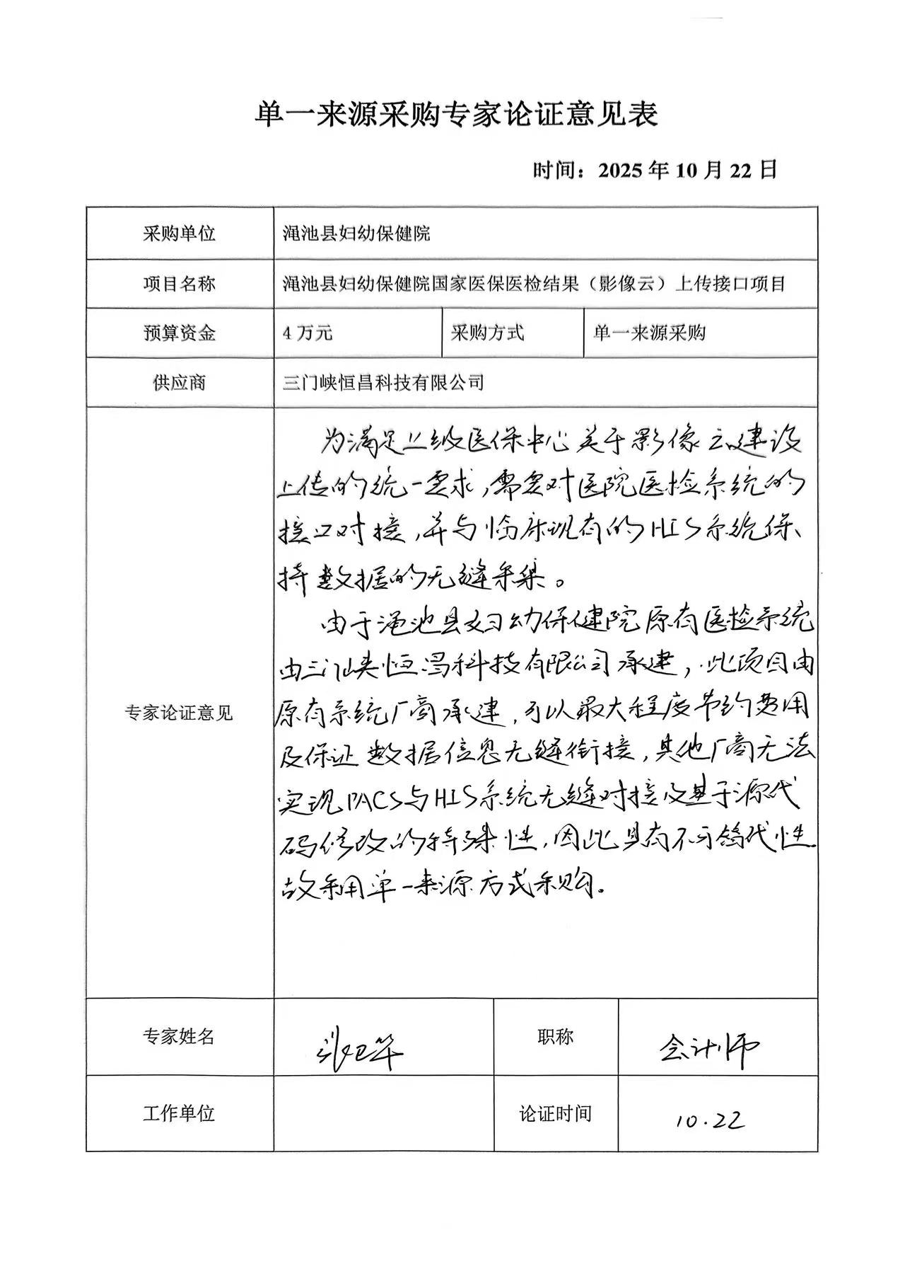 | ******有限公司承建,此项目需对现有业务系统进行数据采集及系统改造,由原有系统厂商承建此项目,可以最大程度节约费用及保证数据信息无缝衔接为最佳方案,其他厂商无法实现PACS与HIS系统无缝对接及基于源代码修改的特殊性,因此具有不可替代性。符合政府采购法第二十—条规定采用单一来源采购的情形,故申请采用单一来源方式采购。 | ||||||||||||||||